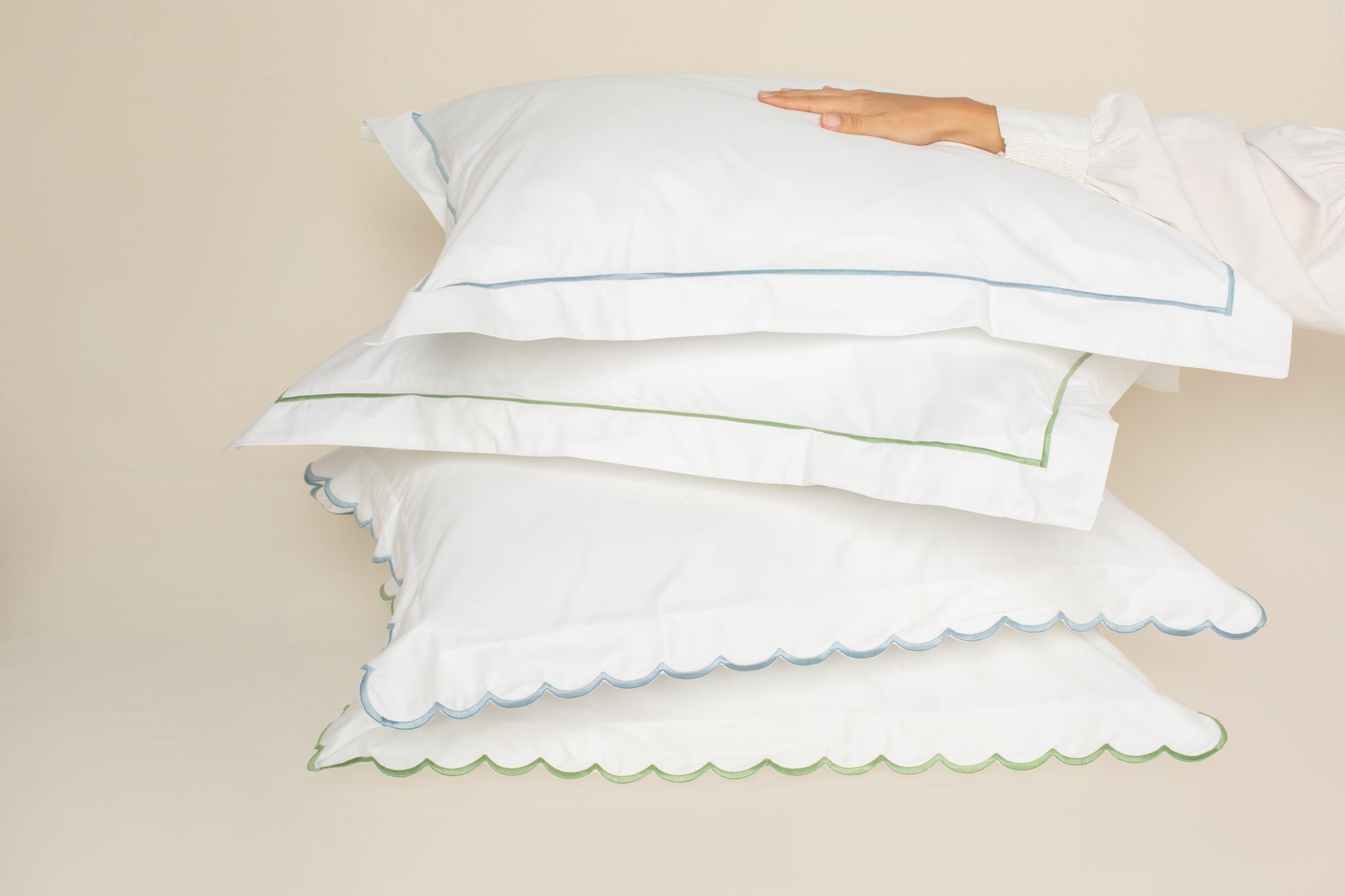 Fronha Salina 300 fios com Bordado na cor Verde Campo