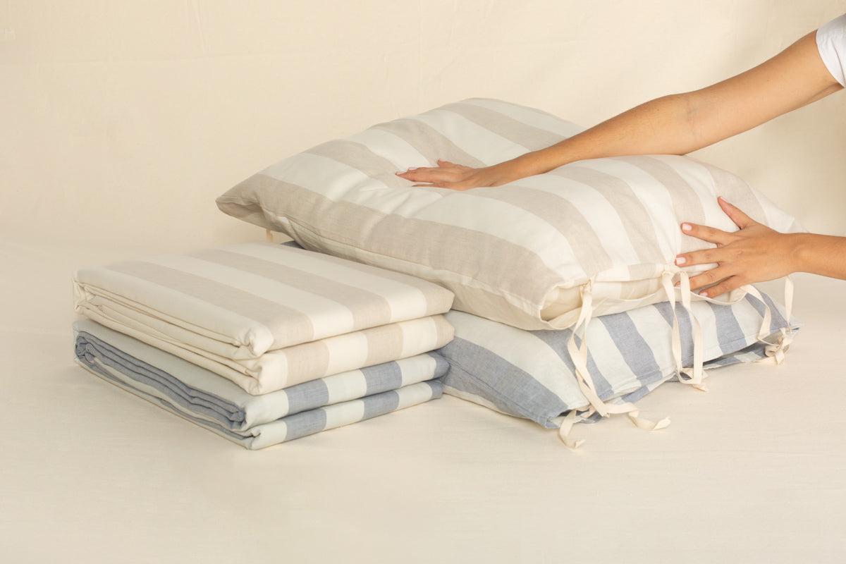 Capa de Almofada Linho Riscas em Bege - 50x70